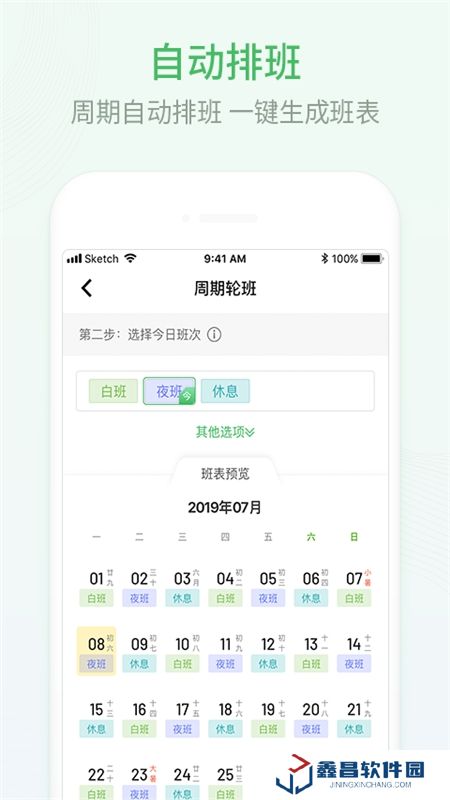 支持手動和周期兩種排班方式快速生成自己的工作專屬班次日歷,設置依據不同班次自動響鈴的輪班鬧鐘,為每一天添加特定備注提醒自己。