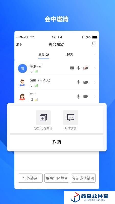 2、能夠選擇不同的方法邀約組員出席會議,能使用短消息邀約和實時閑聊邀約。