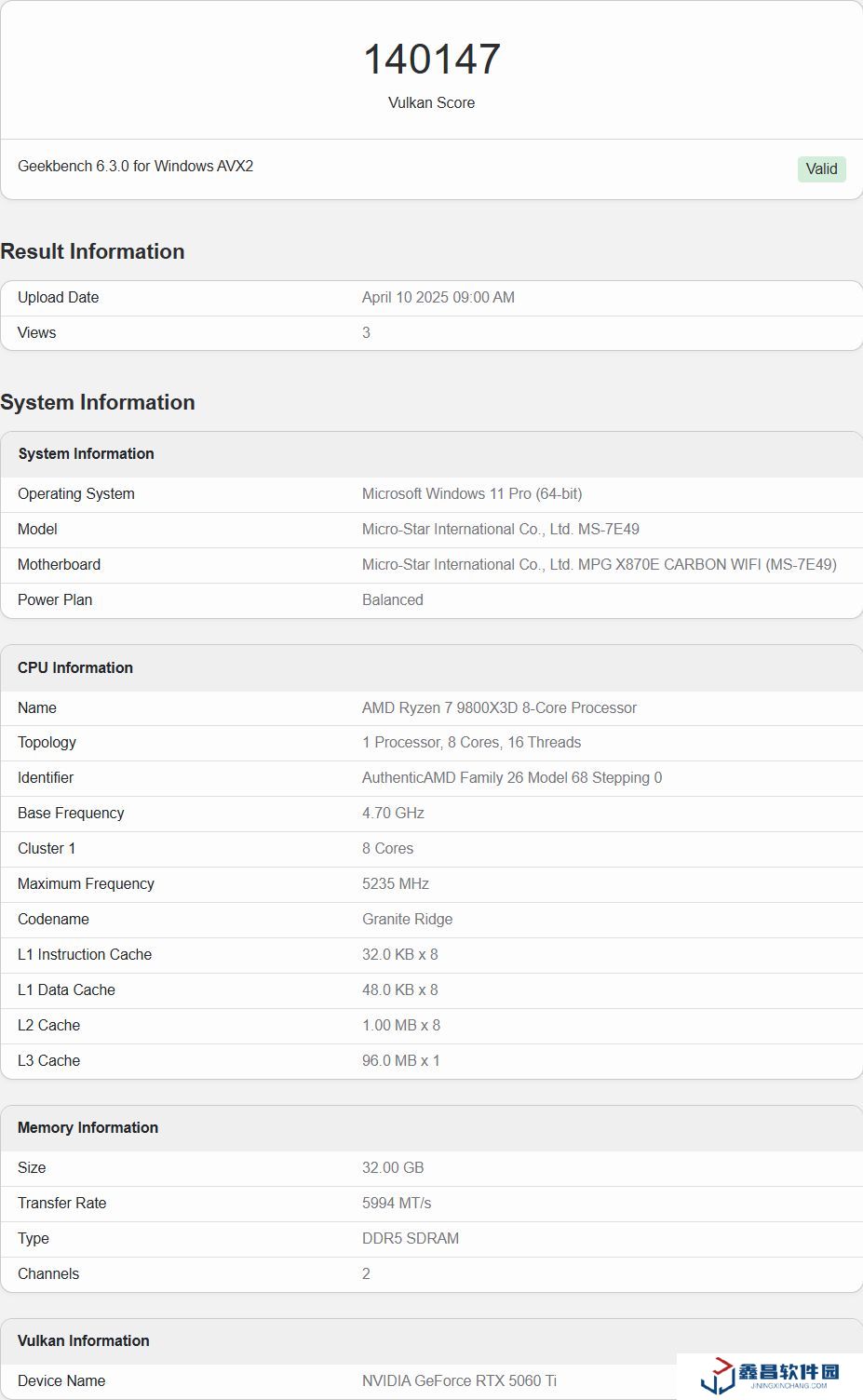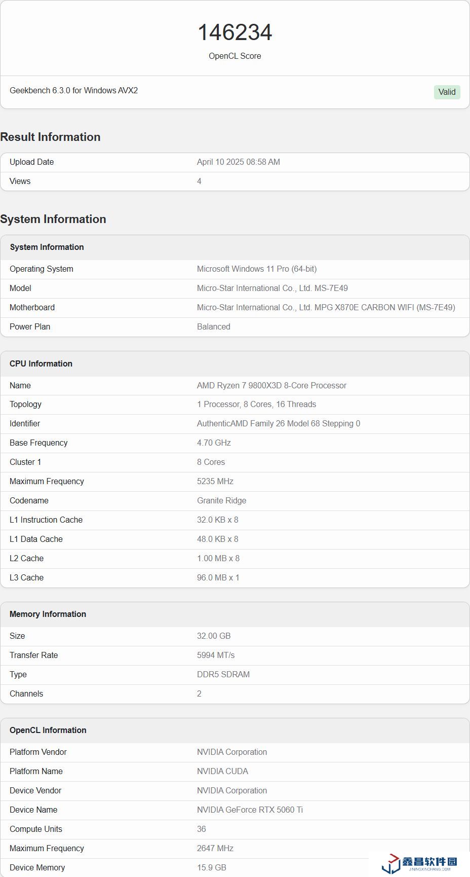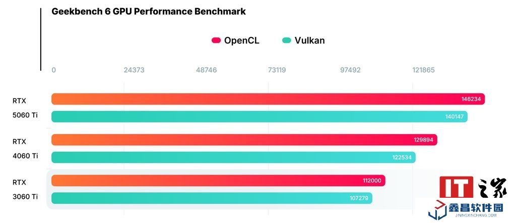 性能測試方面,RTX 5060 Ti 在 Vulkan 測試中得分 140147,在 OpenCL 測試中得分 146234,分別比 RTX 4060 Ti 高出 14% 和 13%。