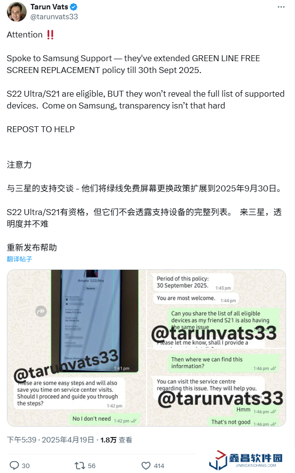 三星印度再次延長針對手機屏幕“綠線”問題的免費換屏期限,包括 Galaxy S21 系列等機型