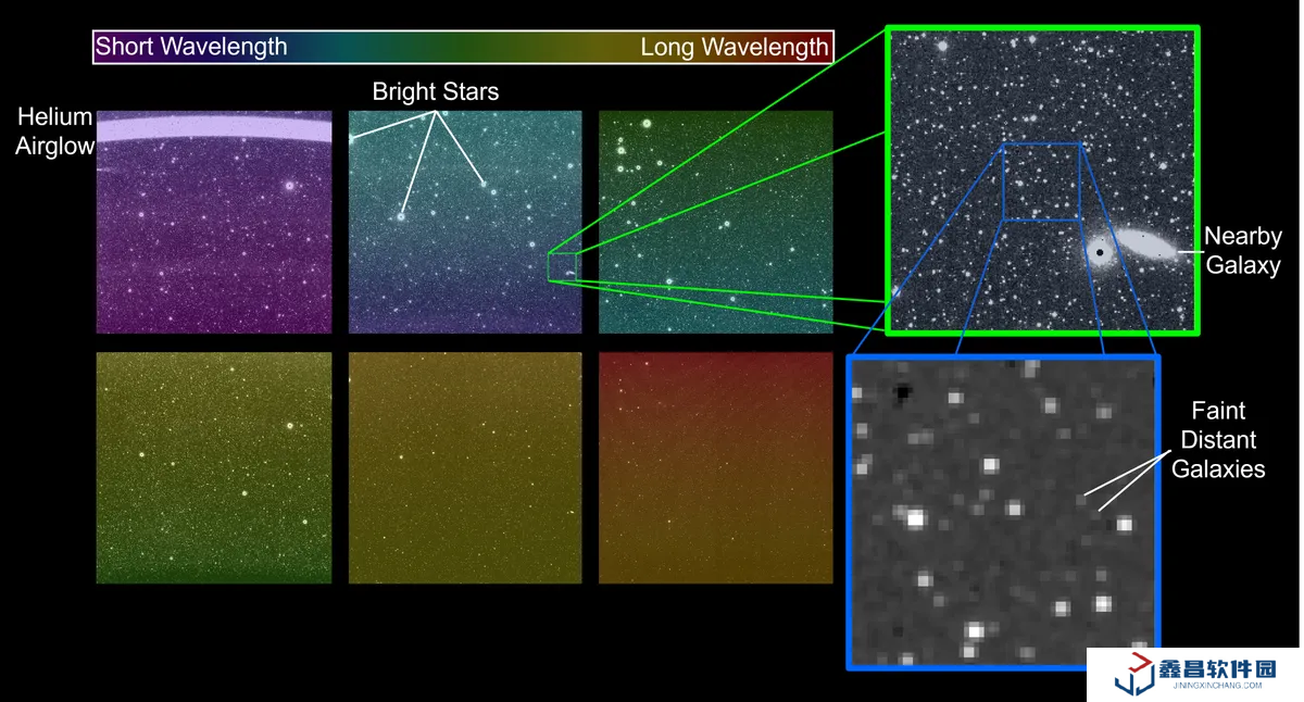 每個(gè)探測(cè)器負(fù)責(zé)揭示 17 個(gè)獨(dú)特波長(zhǎng)帶的信息;因此,這只“紅外之眼”能夠以驚人的 102 個(gè)波段研究宇宙。此外,即使在這些測(cè)試圖像中的每一張中,也包含了大約 10 萬個(gè)天文光源。