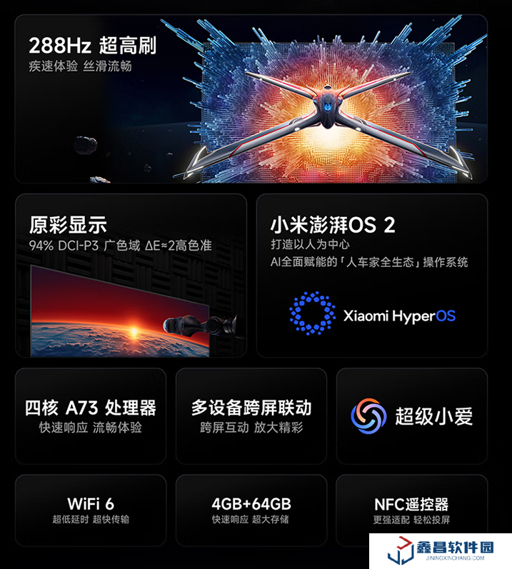 該系列電視搭載原生4K 144Hz屏幕,支持 288Hz 競技模式以及 MEMC 運動補償;色域覆蓋 94% DCI-P3、ΔE≈2。
