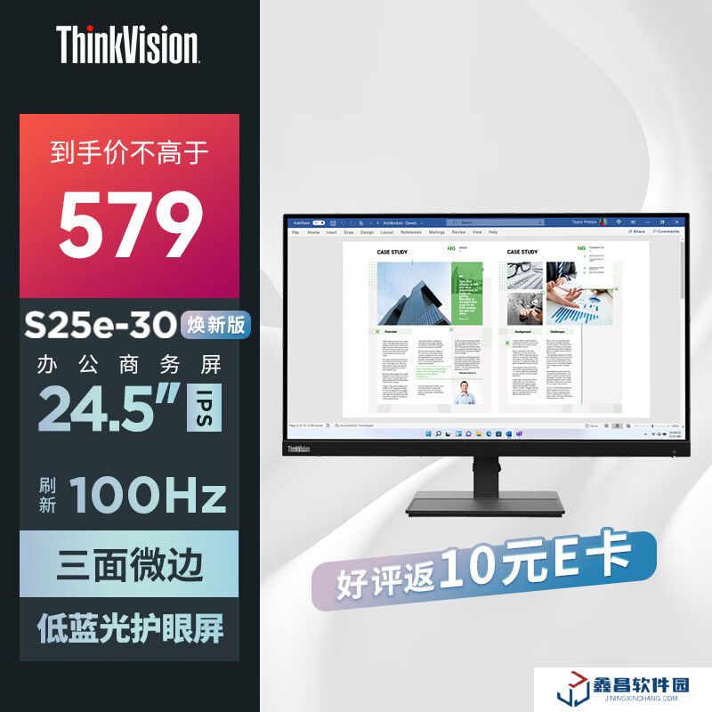 聯(lián)想推出 ThinkVision“S25e-30 煥新版”24.5 英寸顯示器:1080P 100Hz,579 元