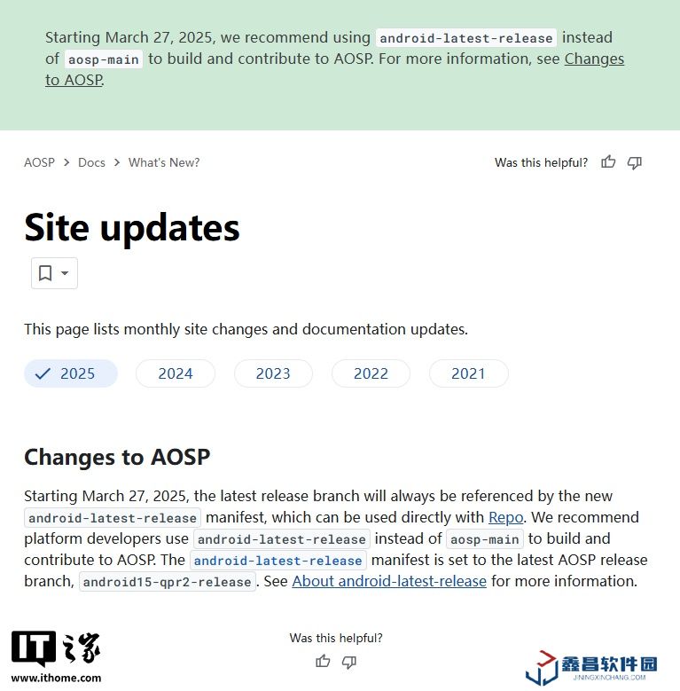 此外,谷歌也表示新“android-latest-release”清單將始終引用最新的 AOSP發(fā)布分支,建議開發(fā)者使用“android-latest-release”而非“aosp-main”。