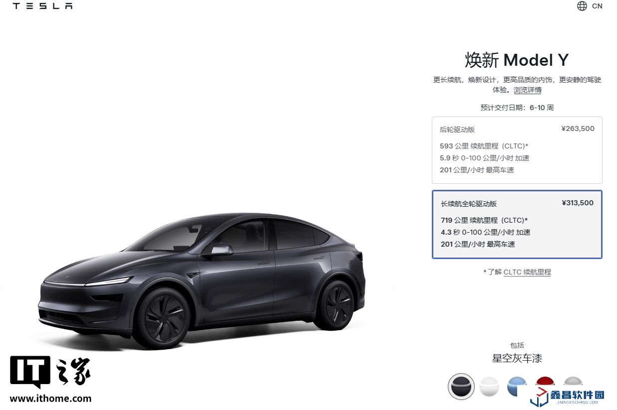 《特斯拉煥新 Model Y 正式發布:26.35 萬元起,長續航車型 30.35 萬元》