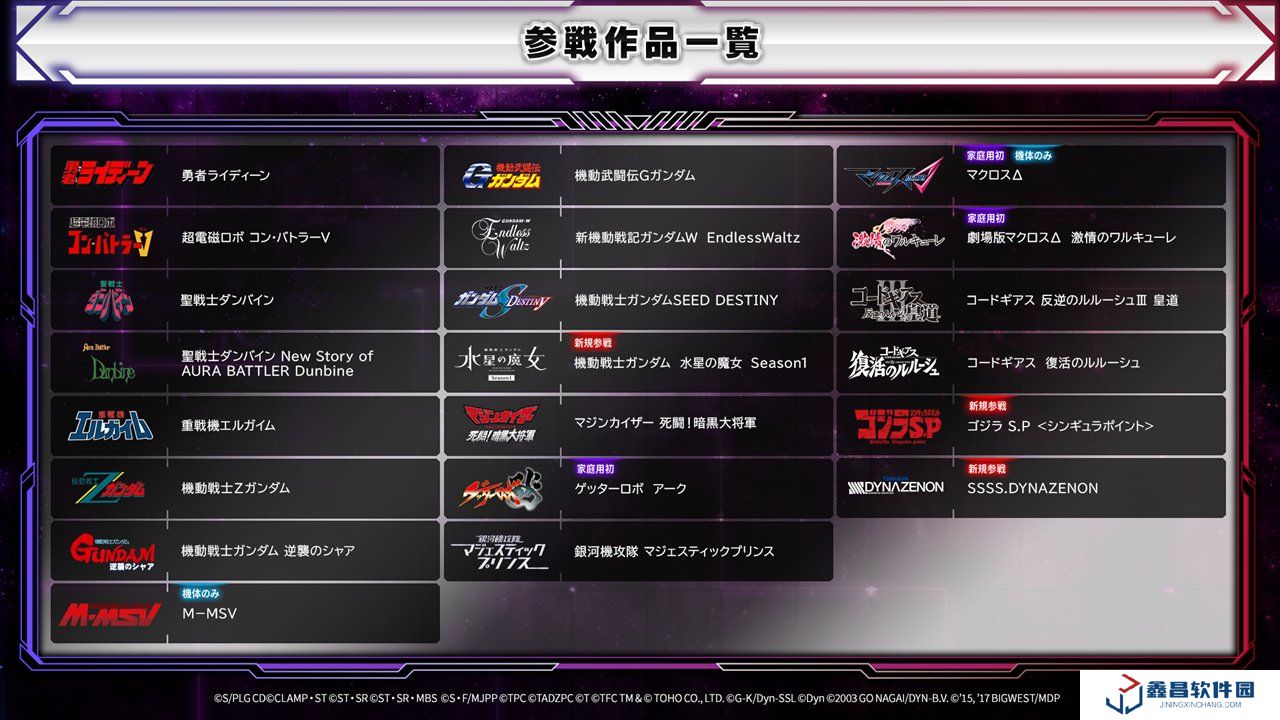 除了確定 21 部參戰作品之外,萬代南夢宮還公布了各種曲目,包括由 JAM Project 演唱的主題曲「反撃 Fight Back!」。