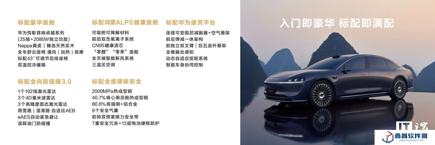 新車提供浩宇藍、寰宇紅、鎏金黑、深空灰等配色,搭載 HUAWEI XPIXEL 百萬像素車語大燈,首發寰宇主題迎賓燈效和交互式迎賓光毯,支持節奏光劍體感游戲,同時還支持100 英寸戶外巨幕投影。