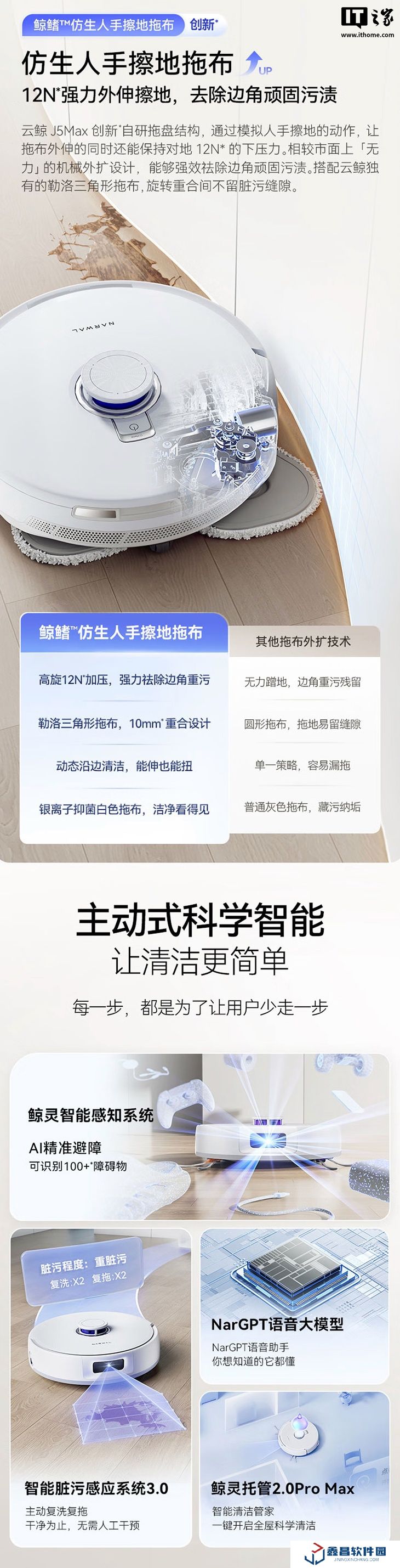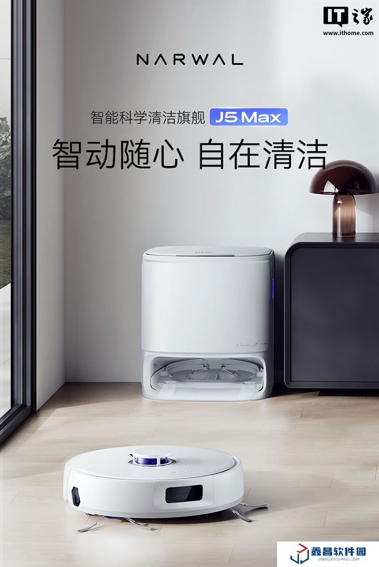 云鯨推出 J5Max 掃拖機器人:18500Pa 吸力、外擴解纏繞邊刷,3599 元起