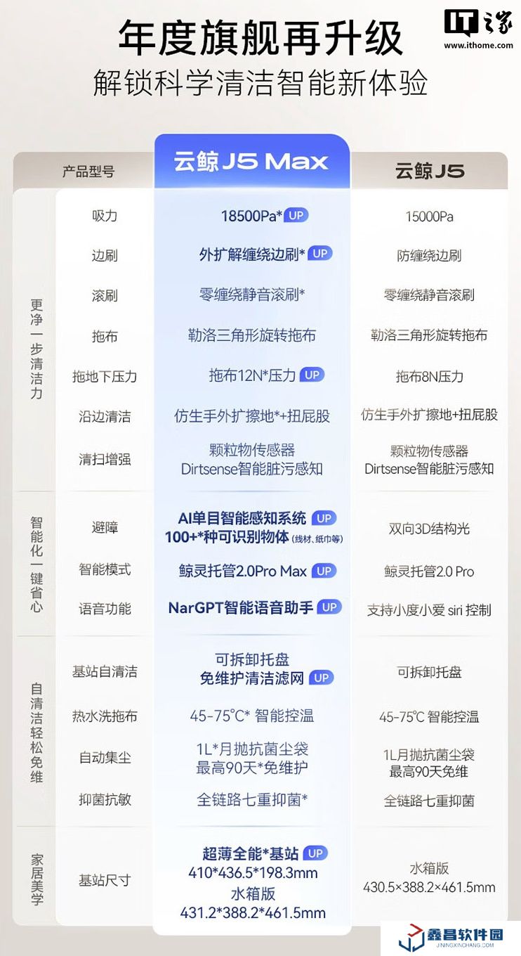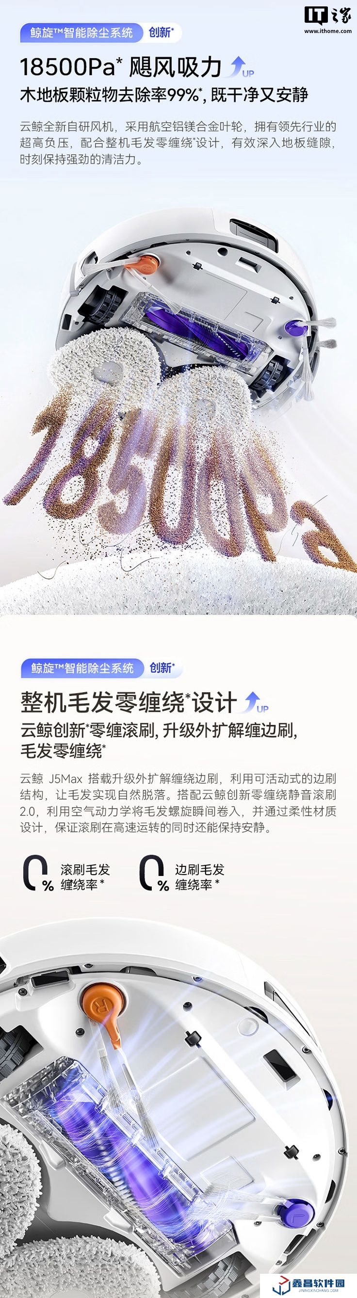 - 云鯨推出 J5Max 掃拖機器人:18500Pa 吸力、外擴解纏繞邊刷,3599 元起