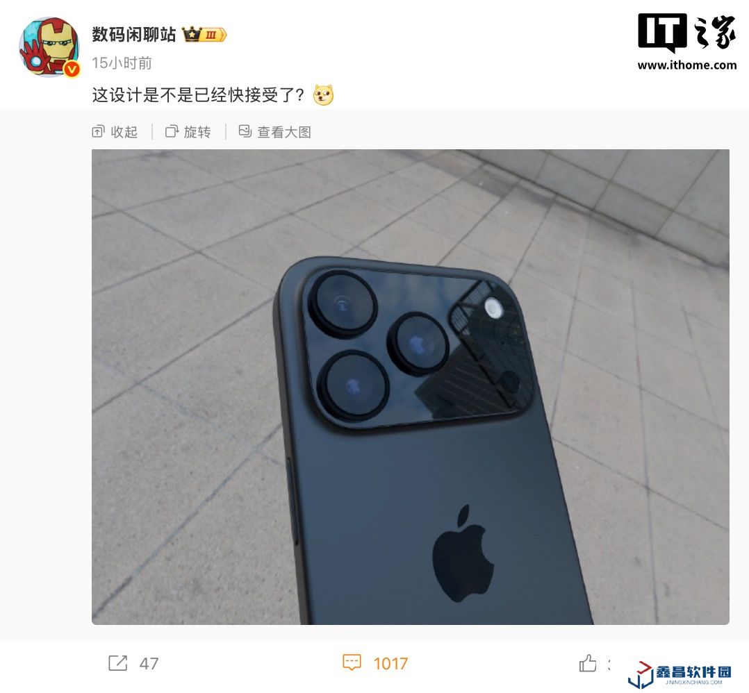 本站 4 月 7 日消息,博主@數碼閑聊站 發布一張機模渲染圖,展示了蘋果即將推出的iPhone 17 Pro系列手機設計,直觀展示了該機“橫向大矩陣”攝像頭模組,考慮到該博主發布內容有較高準確度,該圖預計可以反映最終的手機設計。