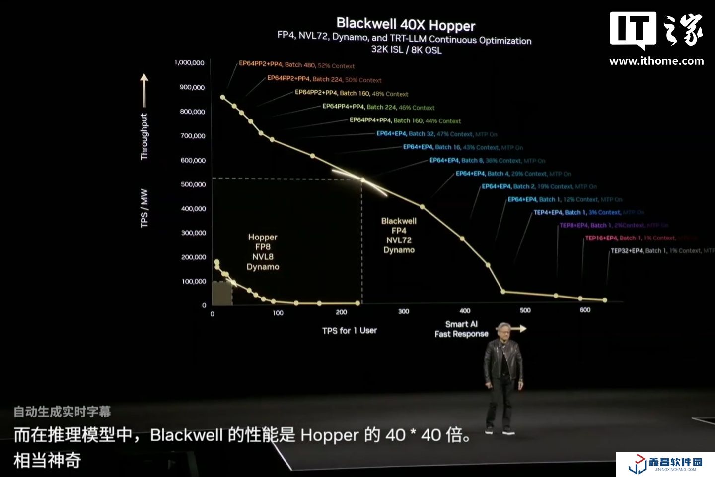 而在推理模型中,Blackwell 的性能是 Hopper 的 40 倍。