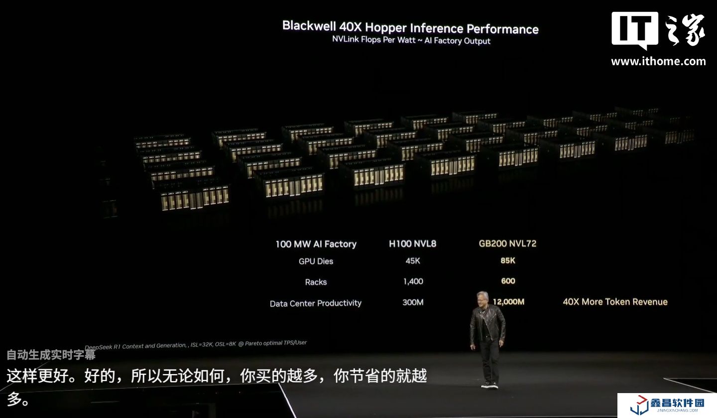 本站注意到,黃仁勛還打趣道,有了上述最新技術(shù)加持,搭建 AI 工廠的廠商“買得越多、省得越多”,總而言之就是掏錢吧。