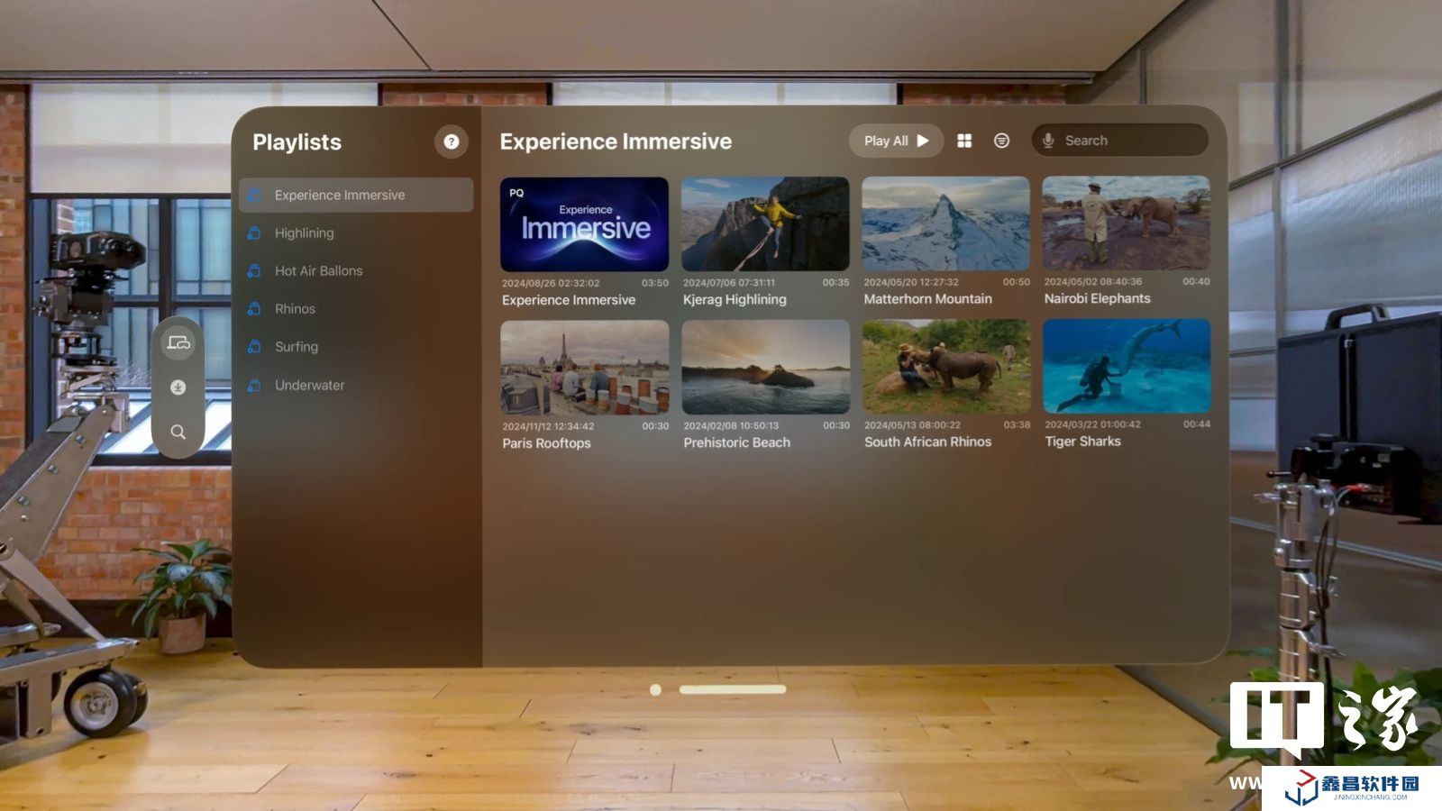 您可以創建播放列表,以便對您的沉浸式視頻庫中的 Apple Immersive Video 文件進行排序、整理和搜索。此外,該應用還支持與 Apple Vision Pro 用戶共享沉浸式視頻,文件類型簡單易下載和導入。