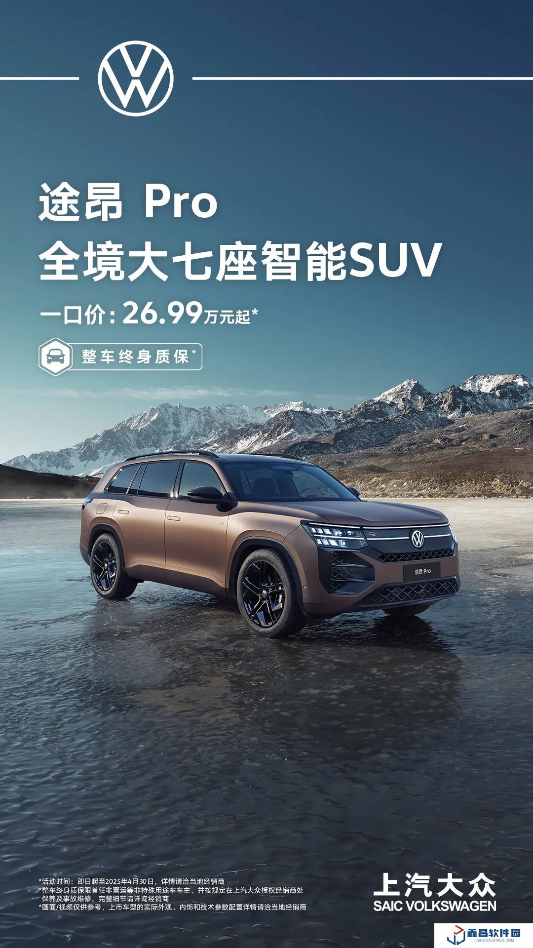 本站 4 月 3 日消息,上汽大眾途昂 Pro 于 3 月 10 日上市,打出整車終身質保政策,售價 26.99 萬元起。