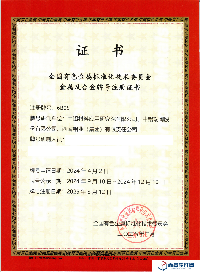 國內首個汽車用鋁板自主牌號“6B05”注冊成功