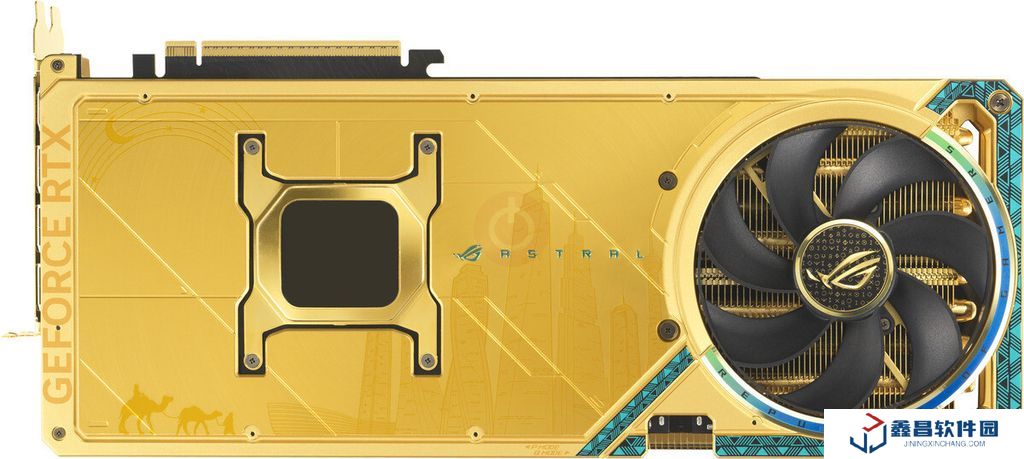 該顯卡基于 NVIDIA RTX 5090 芯片,搭載 ASUS ROG Astral 系列散熱與超頻技術,外殼鑲嵌金屬鍍層,表面刻有迪拜摩天大樓、阿拉伯駱駝與書法圖案,詮釋中東文化元素。