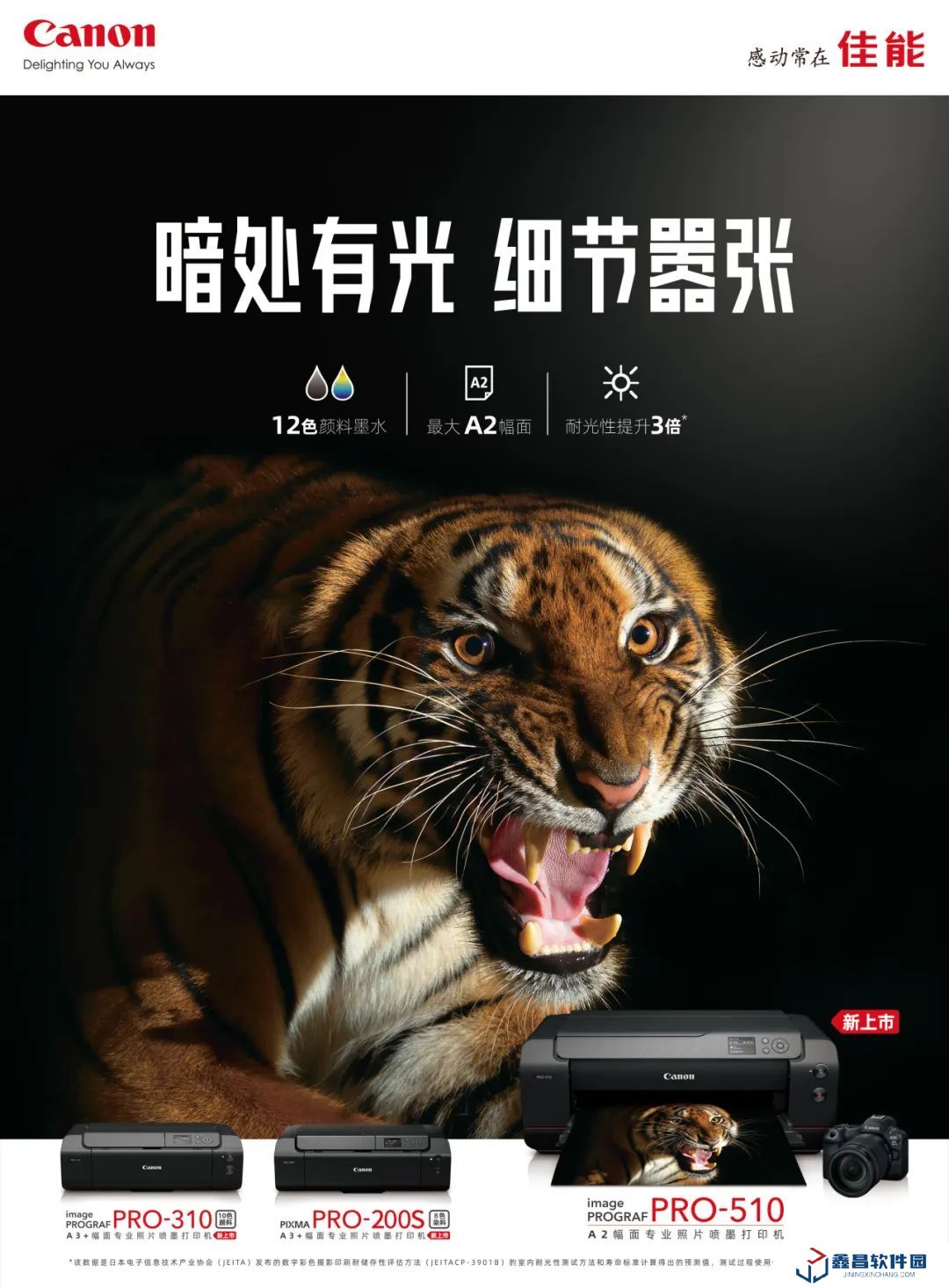 本站 4 月 19 日消息,佳能昨晚推出了新一代 PRO 系列打印機,包括支持 A2 幅面輸出的 imagePROGRAF PRO-510、A3 + 幅面機型 imagePROGRAF PRO-310 以及 PIXMA PRO-200S。