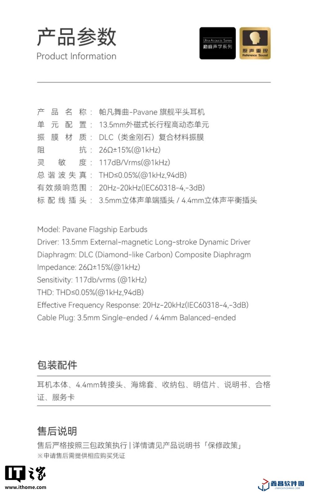 本站 3 月 25 日消息,水月雨預熱旗下“帕凡舞曲 Pavane”旗艦平頭耳機將于明天上午10點首銷,定價為1999元。