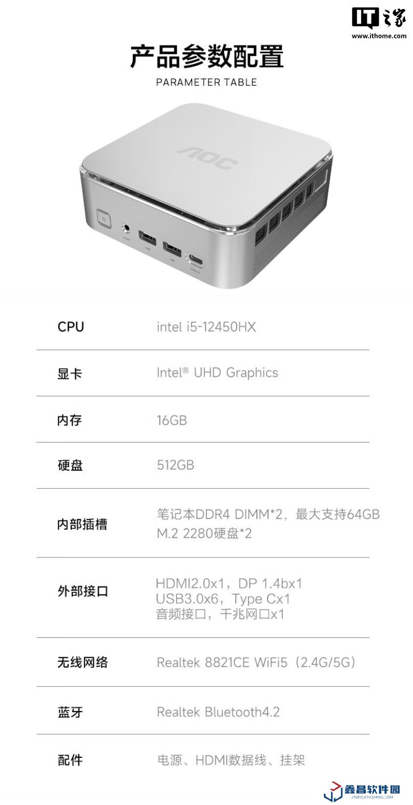 - AOC MOSS M6 Plus 迷你主機新增“i5-12450HX + 16G + 512G”規格售 2099 元(國補后 1679.2 元)