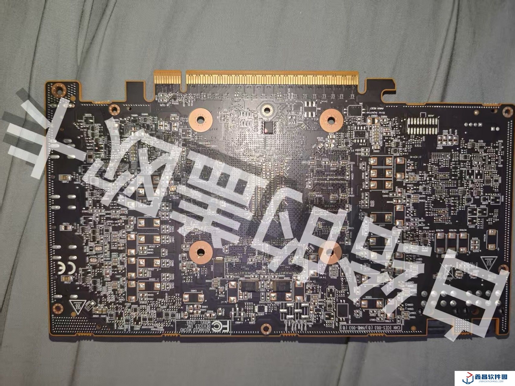 可以看到該顯卡采用三風扇散熱模組,擁有雙 PCIe 8Pin 供電接口,黑色外殼造型硬朗簡潔。其厚度在三槽左右,配備后端開放通風的散熱背板,帶核心背框。
