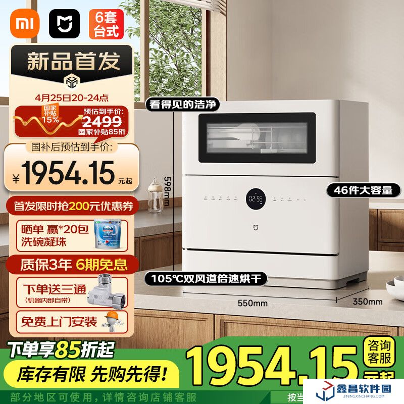 本站 4 月 25 日消息,小米米家臺式洗碗機 6 套 S10 今晚在京東等平臺開售,到手價2299 元,國補價 1954.15 元起。