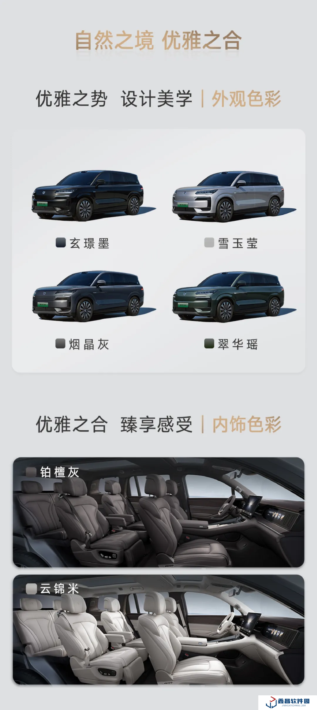 外觀方面,騰勢 N9 采用比較方正的造型,采用狹長的大燈組與封閉式前格柵相互搭配,兩側預留導流槽,前包圍采用雙下分層的散熱通風開口設計,整體造型更具厚重感。同時,該車還配備隱藏式門把手、電動側踏。提供玄璟墨、雪玉瑩、煙晶灰、翠華瑤四種外觀配色,以及鉑檀灰、云錦米兩種內飾配色,長寬高分別為 5258/2030/1830mm,軸距 3125mm。此外,騰勢 N9 提供有傳統造型外后視鏡和流媒體外后視鏡。