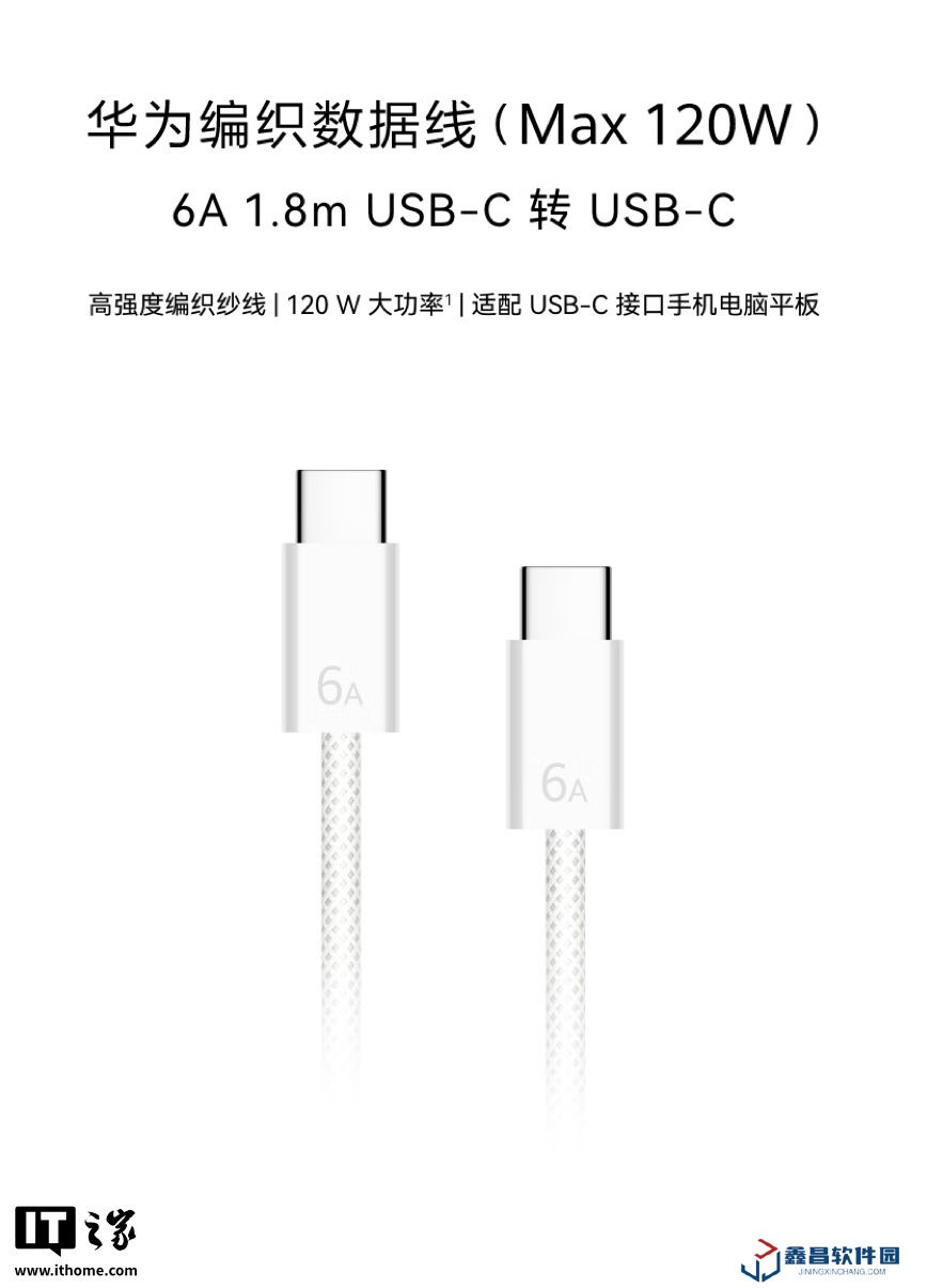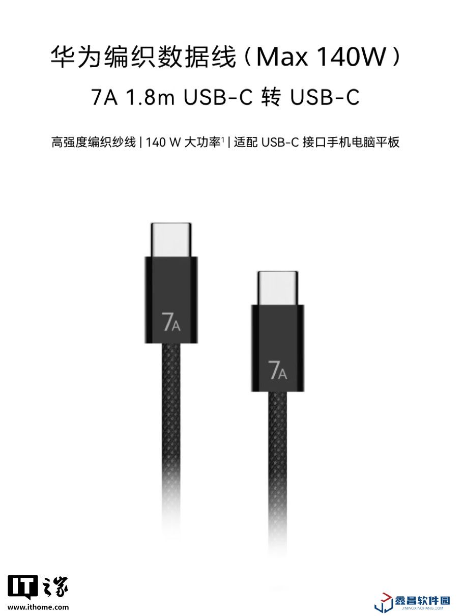 華為編織數據線 6A / 7A 上架:1.8 米長度,120W 售 99 元 / 140W 售 129 元