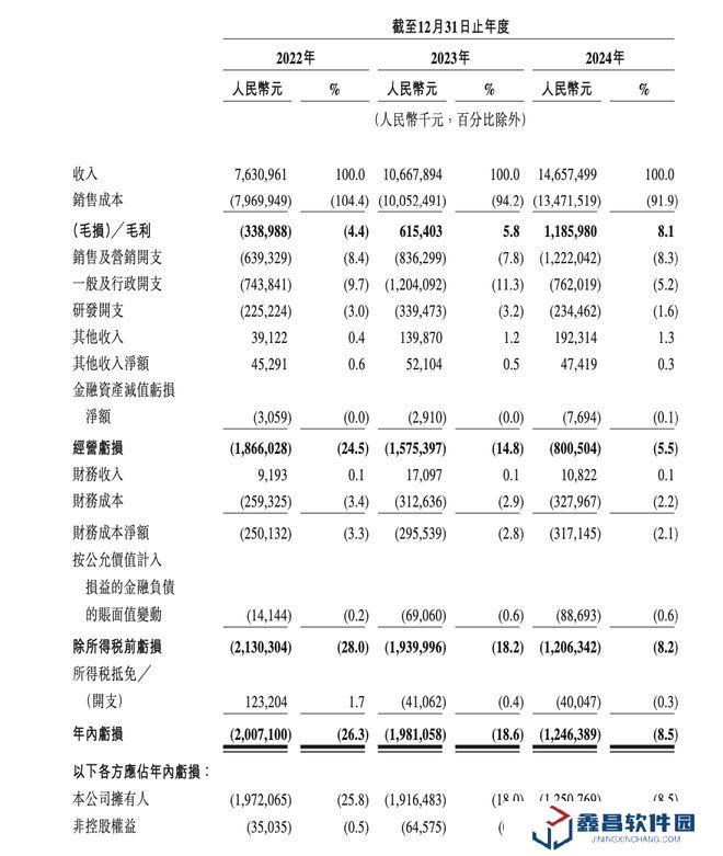 據招股書,2022 年-2024 年,曹操出行實現收入分別為 76.31 億元、106.68 億元、146.57 億元;年內虧損分別為 20.07 億元、19.81 億元、12.46 億元??梢?,2024 年其收入同比增長 37.4%。