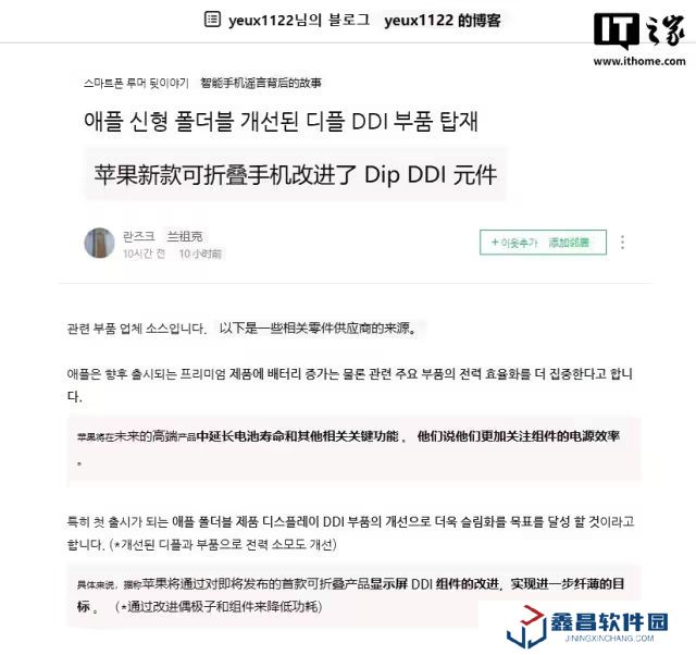 yeux1122 在 Naver 博客上發文稱,蘋果正在對其首款折疊屏 iPhone 所采用的顯示驅動集成電路(DDI)進行精細化調整,旨在實現設備整體更為輕薄的設計。