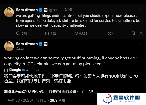 本站 4 月 2 日消息,OpenAI 首席執行官山姆?奧爾特曼(Sam Altman)在社交媒體平臺 X 上發布了一系列帖子,透露該公司新推出的 ChatGPT 圖像生成工具的高人氣引發了產品延遲等一系列問題。