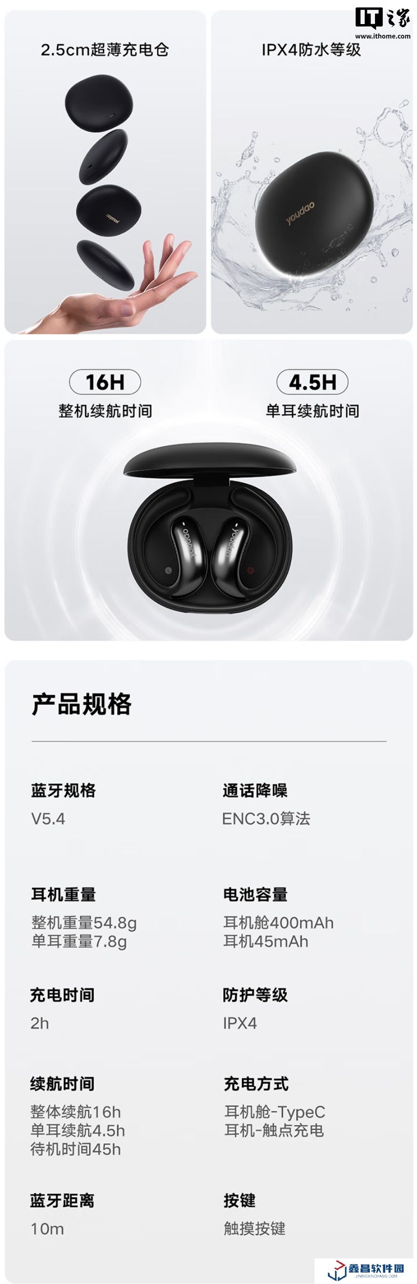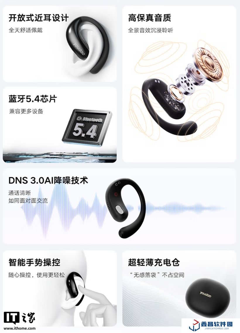 Youdao OpenEar 支持雙設備連接切換,單耳續(xù)航 4.5h,整機續(xù)航 16h,售價 269 元,現已在京東開售,本站附參數表如下: