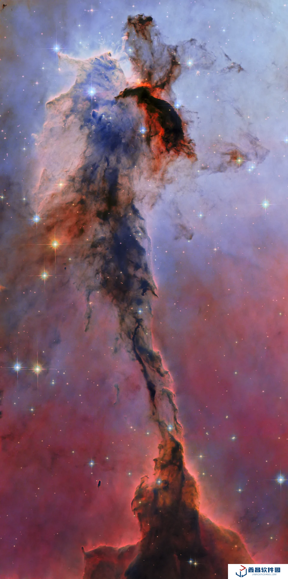 根據(jù) NASA 和 ESA 的介紹,圖像中這座高聳的“尖塔”實(shí)際高度達(dá)到驚人的 9.5 光年。它并非鷹狀星云的全部,而是這個(gè)被譽(yù)為年輕恒星“孕育所”的廣闊天體的一部分。圖像中呈現(xiàn)出的獨(dú)特橙色與深邃藍(lán)色交織的景象,是由于內(nèi)部翻騰的氫氣與太空塵埃相互作用的結(jié)果。鷹狀星云之所以得名“鷹”,是因?yàn)閺奶囟ń嵌扔^察其整體時(shí),其邊緣的云氣結(jié)構(gòu),如同這張新圖像中所展示的部分一樣,酷似一只巨型猛禽展開的翅膀。