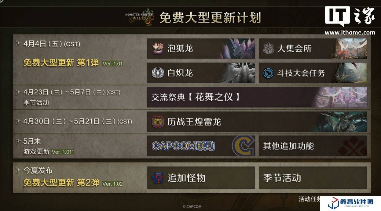 本站 4 月 3 日消息,《怪物獵人:荒野》第一彈免費大型更新(1.010.00.00)將于明日 11:00 正式上線,卡普空剛剛在官網發布了此次更新說明。本站翻譯如下: