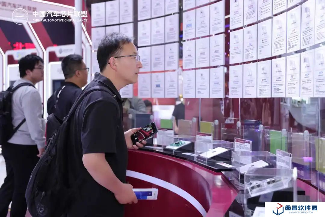 展臺還推出了“國產汽車芯片網紅打卡墻”,墻面采用汽車底盤的造型設計,陳列著數百顆國產汽車芯片。