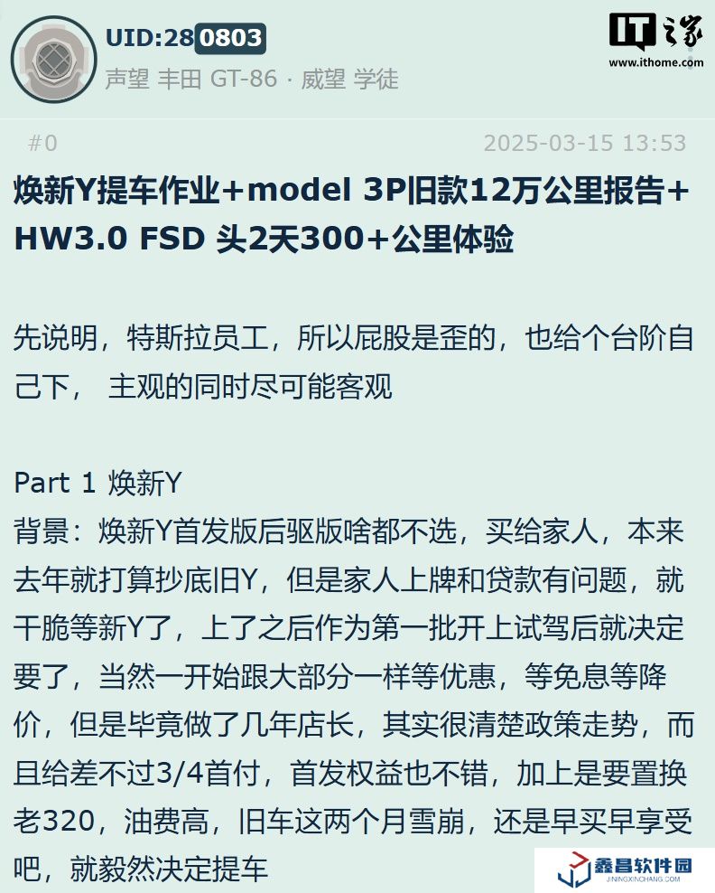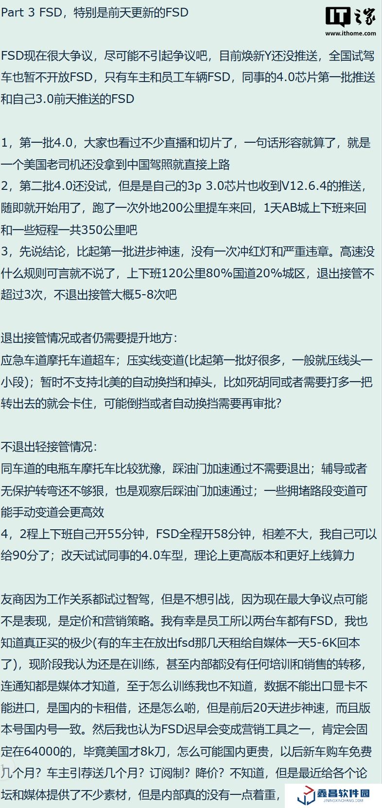 本站 3 月 15 日消息,今日,自稱是特斯拉中國員工的用戶在NGA 論壇發(fā)文稱,搭載 HW 4.0 芯片的特斯拉車型已經(jīng)收到第一批 FSD 推送,效果不是很理想,堪比“一個美國老司機還沒拿到中國駕照就直接上路”。