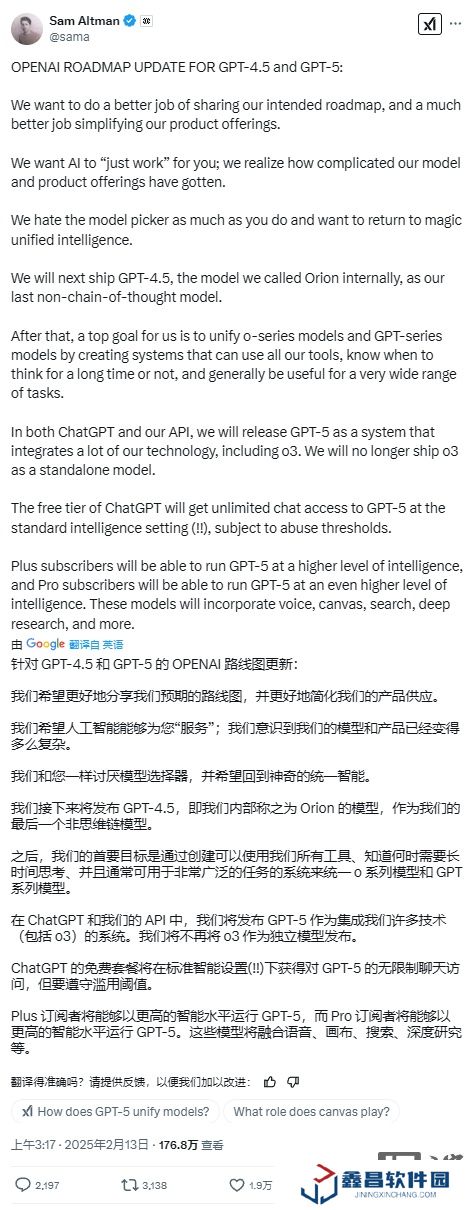 本站注意到,奧爾特曼今年 2 月曾發(fā)布一份路線圖,詳細(xì)闡述了公司 GPT-4.5 和 GPT-5 人工智能模型的發(fā)展計(jì)劃。