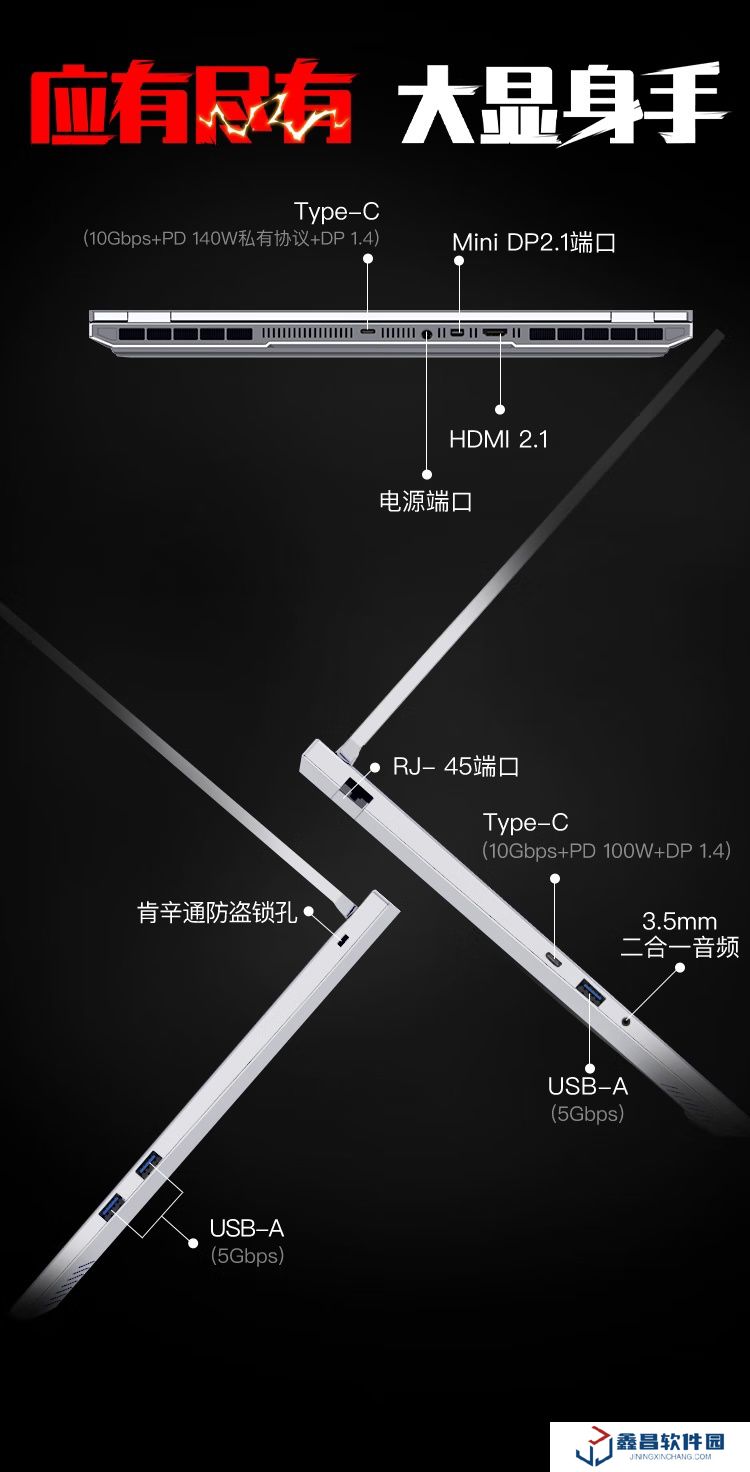 此外,蛟龍 16 Pro 采用 A 面航空級金屬,內置 80Wh 電池,適配器從 280W 換成了 250W,支持 140W 私有協議 PD 快充和 100W PD 標準協議快充。本站附機械革命蛟龍 16 Pro 筆記本接口信息如下: