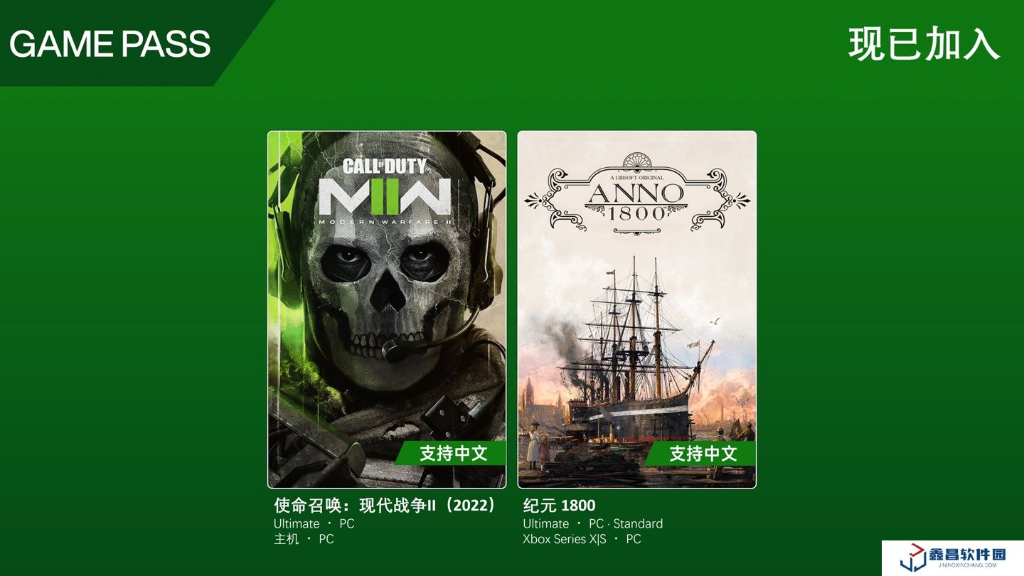 據此前報道,《使命召喚:現代戰爭 II(2022)》、《紀元1800》兩款游戲現已加入 Game Pass Ultimate?PC服務,而《紀元1800》同時加入Game Pass Standard服務。