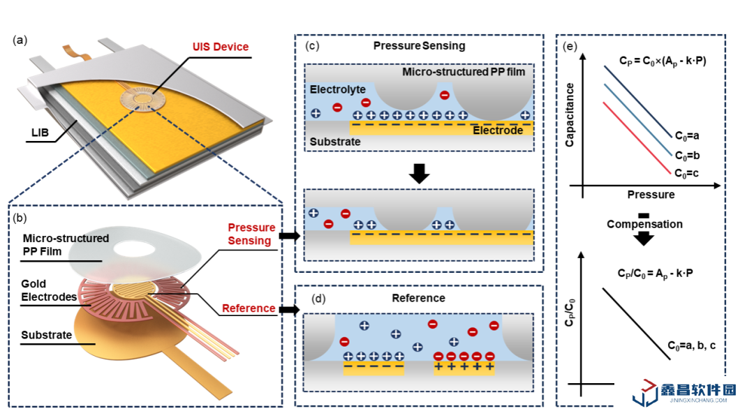 據本站了解,鋰離子電池因其高能量密度和長循環壽命而成為電動汽車和儲能系統的核心。然而,鋰枝晶生長、SEI 膜生長等問題威脅著電池的使用安全與服役壽命。在電池內原位檢測枝晶和 SEI 膜生長過程中的膨脹力變化被認為是實現早期預警和精準監測的有效方法。傳統的植入式光纖監測方法存在系統尺寸大、光纖力學性能脆弱等問題;而柔性壓力傳感器在腐蝕性電解液環境中長期穩定性不足。