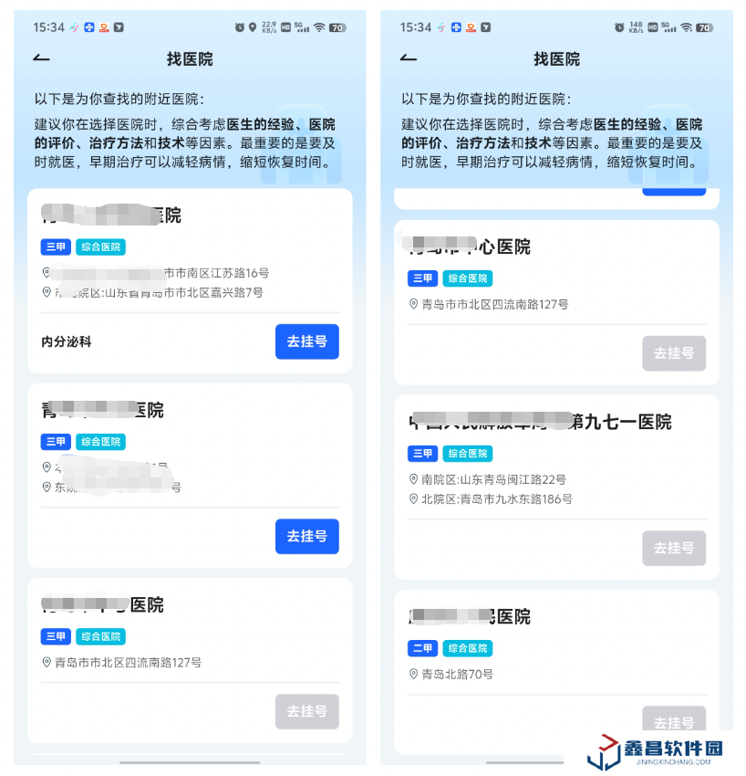 另外,訊飛曉醫(yī)還直接提供了找醫(yī)院的選項(xiàng),點(diǎn)開(kāi)后能夠看到我所在地附近可以去的醫(yī)院,小編看了一下,都是本地評(píng)價(jià)比較好的醫(yī)院。