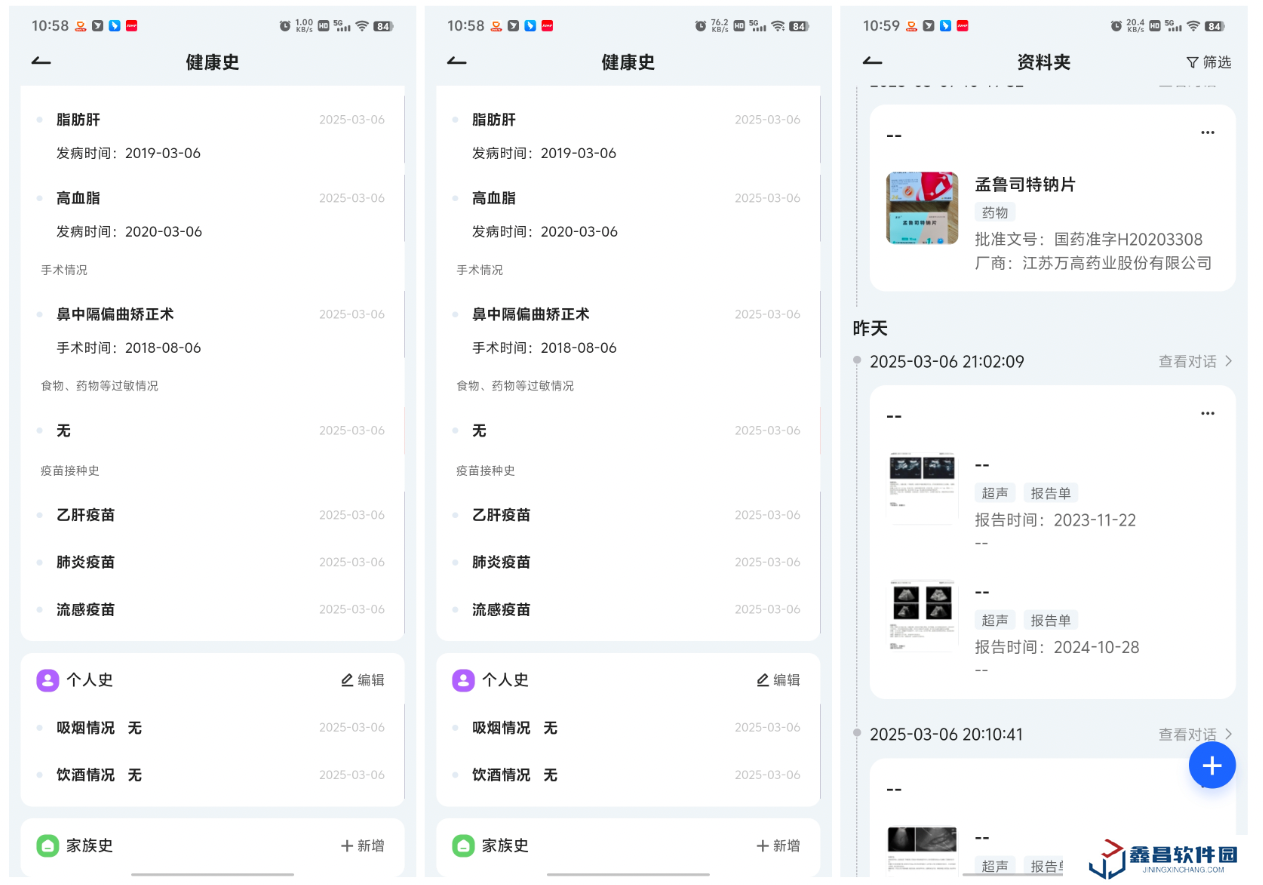 再比如訊飛曉醫(yī)還有個(gè)性化的健康空間,這里匯總了你上傳的所有病歷、報(bào)告單、使用的藥物和體檢報(bào)告等信息,同時(shí)你還可以在這里完善你的健康史、包括既往病史、個(gè)人吸煙和飲酒情況以及家族病史等,這些都會(huì)成為你向訊飛曉醫(yī)咨詢時(shí)重要的參考信息。