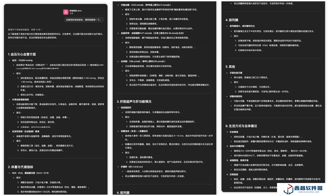 再看 GPT-o1,這次 GPT-o1 給出的解讀能直接找出報(bào)告中的異常項(xiàng)目,相對(duì)來(lái)說(shuō)實(shí)用性比 DeepSeek 要好一些,也有針對(duì)異常項(xiàng)目的應(yīng)對(duì)建議,和 DeepSeek 相比屬于是差不多的水平。