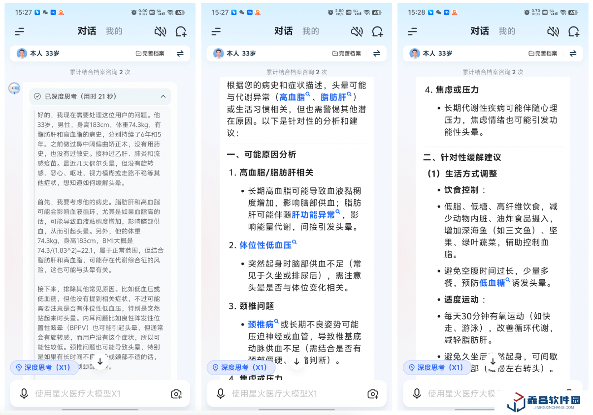 整體來(lái)說(shuō),如果說(shuō)開(kāi)啟星火醫(yī)療大模型 X1 之前的訊飛曉醫(yī)是一個(gè)知識(shí)淵博的人在根據(jù)現(xiàn)有的資料為你答疑解惑,那么開(kāi)啟大模型 X1 之后的訊飛曉醫(yī)則更像是一個(gè)真實(shí)的私人醫(yī)生在根據(jù)對(duì)你的了解來(lái)分析病癥、給出健康管理的建議。