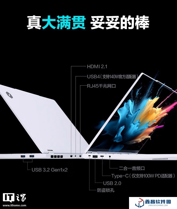 此外,該機配備 99Wh 電池,帶有 140W私有協議氮化鎵適配器。該機的具體I/O如下: