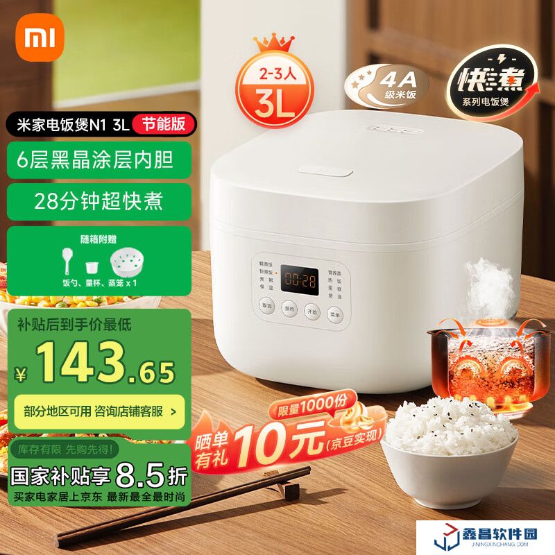 京東小米米家電飯煲 N1 3 升 節能版【能效升級】家用 2-3 人 多功能電飯鍋煮粥鍋煮飯 不粘內膽 智能預約 169 元直達鏈接米家電飯煲 N1 3L 節能版與去年 7 月推出的米家電飯煲 N1 3L 基本一致,但從三級能效升級為二級能效,所以符合國補標準。