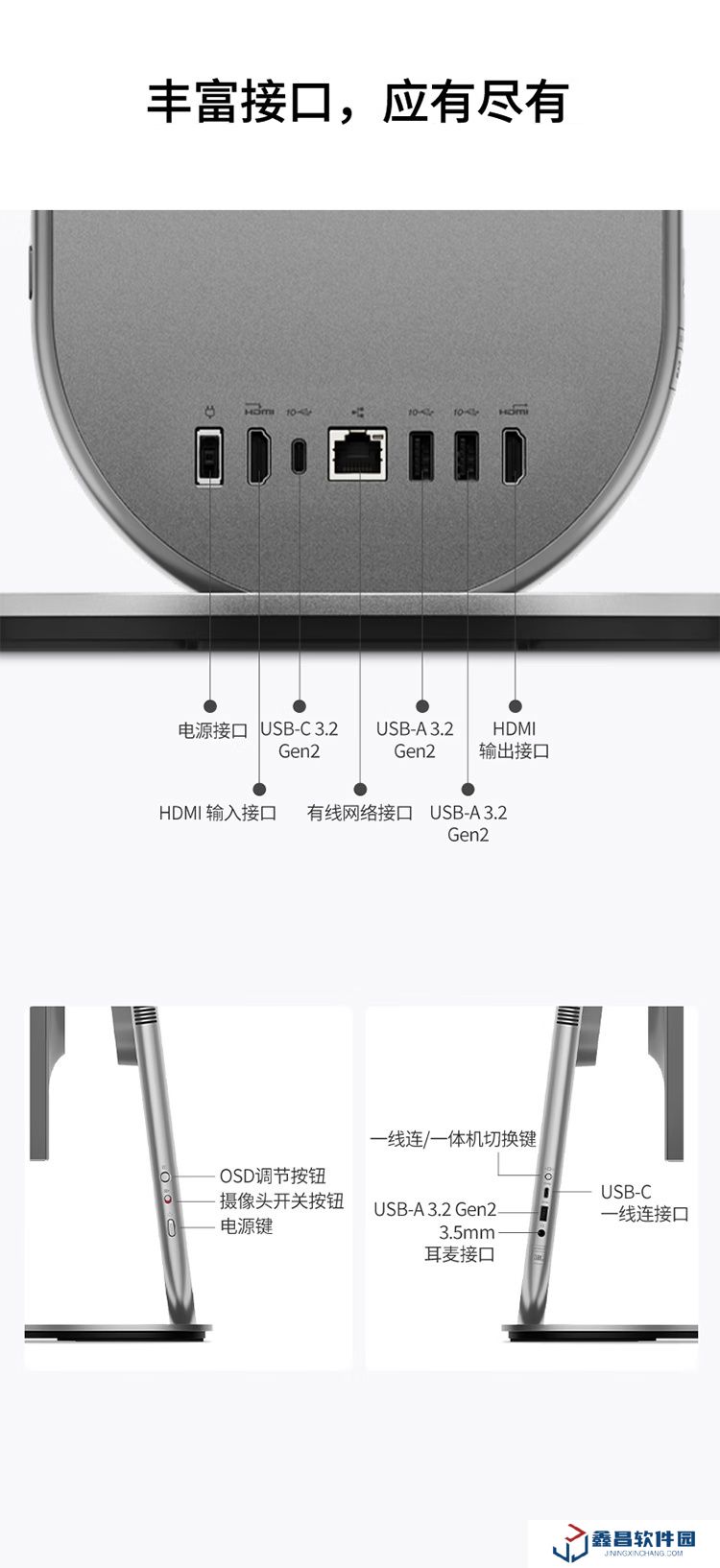 這款一體機采用了 27 英寸 LCD 高刷屏,具備2.5K 分辨率、120Hz 刷新率、99%sRGB 色域、400nits 亮度,通過 DisplayHDR 認證,支持 EyeSafe 2.0 護眼,通過德國萊茵雙重護眼認證。