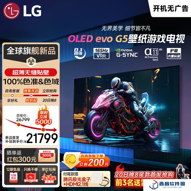 - LG OLED evo G5 系列電視開售:55 英寸 13799 元,65 英寸 21799 元