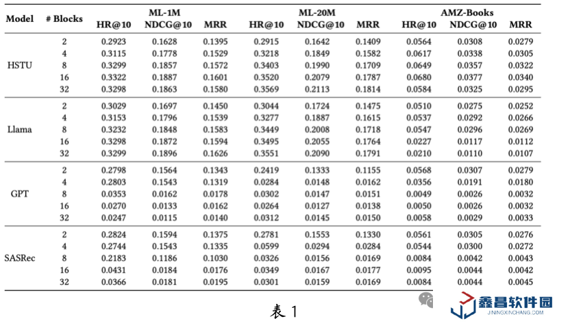 復現并研究不同架構的生成式推薦模型及其擴展定律;通過消融實驗和參數分析,解析 HSTU 的擴展定律來源,并賦予 SASRec 以可擴展性;