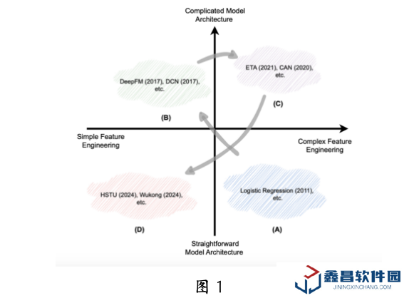隨著深度學習的發展,研究者專注于復雜模型的設計,以更好地擬合用戶偏好,并提升對 GPU 并行計算的利用率(圖 1B)。