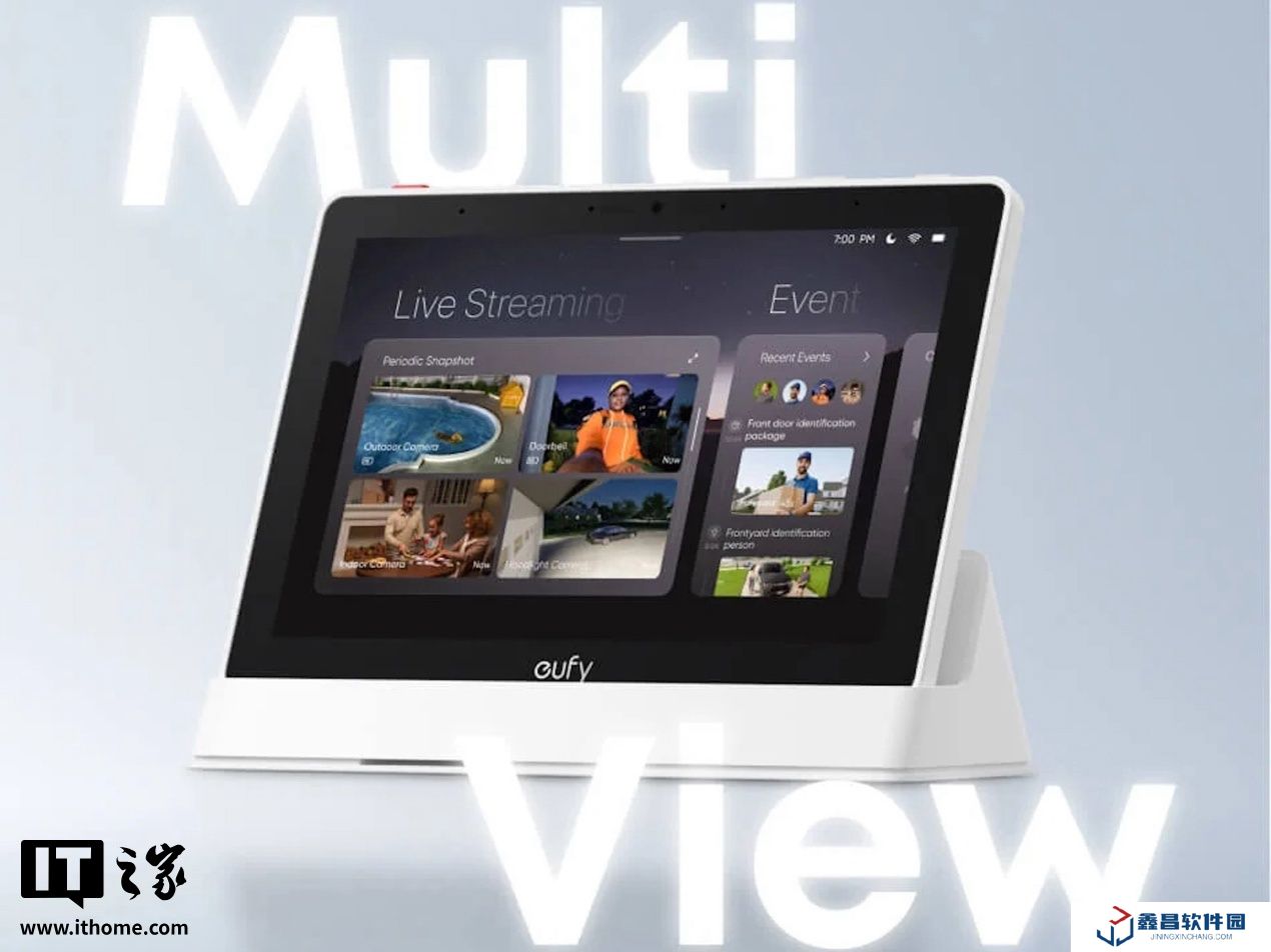 據本站了解,Eufy E10 可實時串流安克安防攝像頭畫面,并在訪客按動智能門鈴時顯示實時影像。設備內置麥克風支持雙向語音對講,用戶可通過屏幕同時監看多個視頻流,不過目前官方尚未公布兼容的攝像頭型號列表。